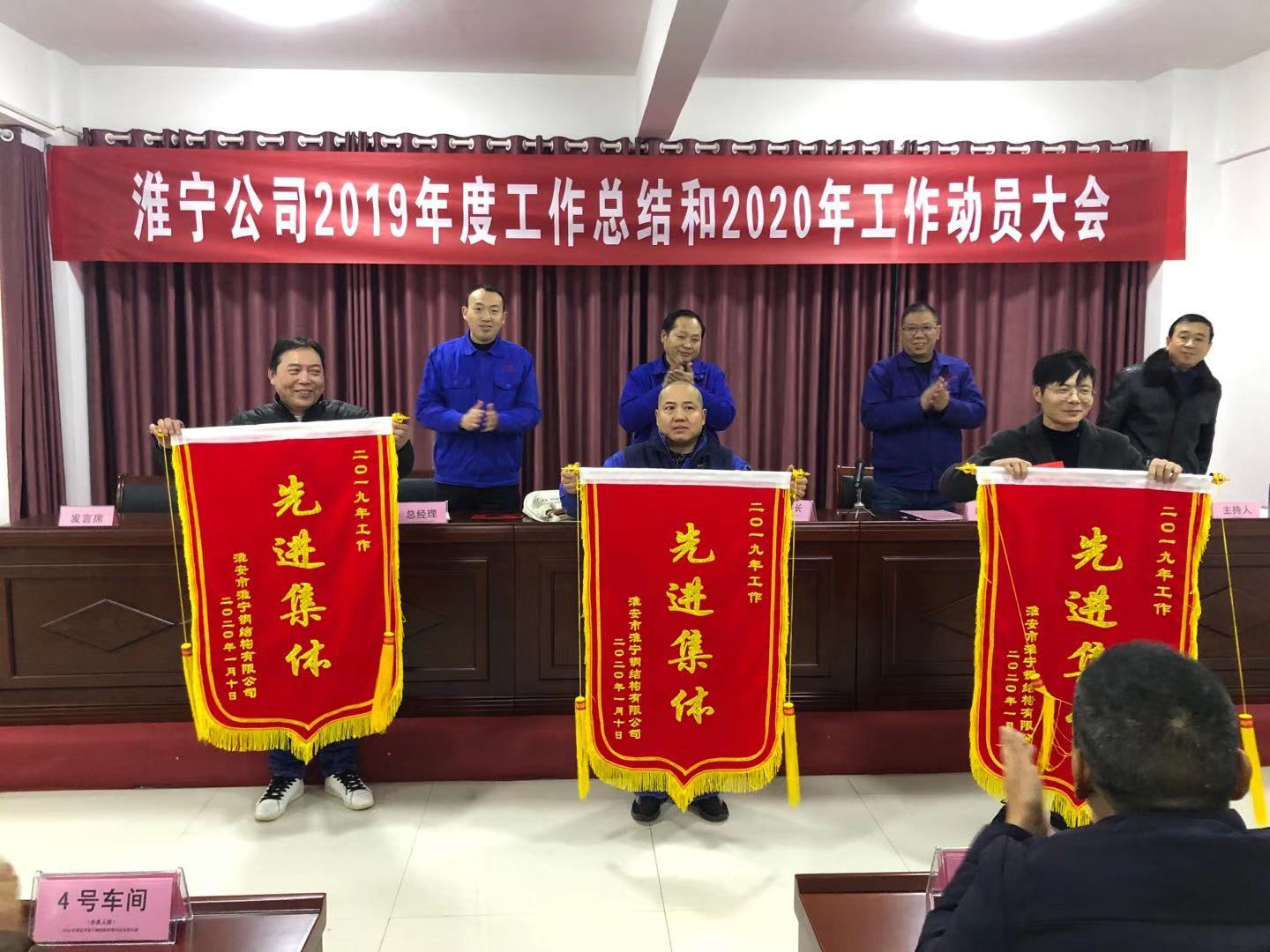 2020年1月10日,淮安市淮寧鋼結(jié)構(gòu)有限公司在本公司辦公樓一樓會(huì)議室召開了2019年度工作總結(jié)和2020年工作動(dòng)員大會(huì),從車間到管理層共有150余人參加了會(huì)議。會(huì)上首先有總經(jīng)理秦電文致新年賀詞,接著由董事長(zhǎng)陳國(guó)寶先生代表公司作《2019年度工作總結(jié)和2020年工作動(dòng)員報(bào)告》,他實(shí)事求是地總結(jié)了過(guò)去一年的工作,對(duì)存在的問(wèn)題進(jìn)行深入淺出地分析,并提出了新的一年的發(fā)展思路和年產(chǎn)鋼結(jié)構(gòu)3萬(wàn)噸、實(shí)現(xiàn)銷售收入1億元、利稅2000萬(wàn)元的奮斗目標(biāo)及5個(gè)方面的重點(diǎn)工作措施。會(huì)上還采取無(wú)記名投票方式差額選舉產(chǎn)生3個(gè)先進(jìn)集體和24名優(yōu)秀員工,并對(duì)獲得“先進(jìn)集體”和“優(yōu)秀員工”稱號(hào)的車間、部門、員工進(jìn)行了表彰和獎(jiǎng)勵(lì),先進(jìn)集體,優(yōu)秀員工代表作表態(tài)發(fā)言,整個(gè)會(huì)議歷時(shí)兩小時(shí)三十分鐘,會(huì)議全過(guò)程始終洋溢著振奮、熱烈、愉快的氣氛。會(huì)議結(jié)束后,全體參會(huì)員工參加了公司舉辦的晚宴。