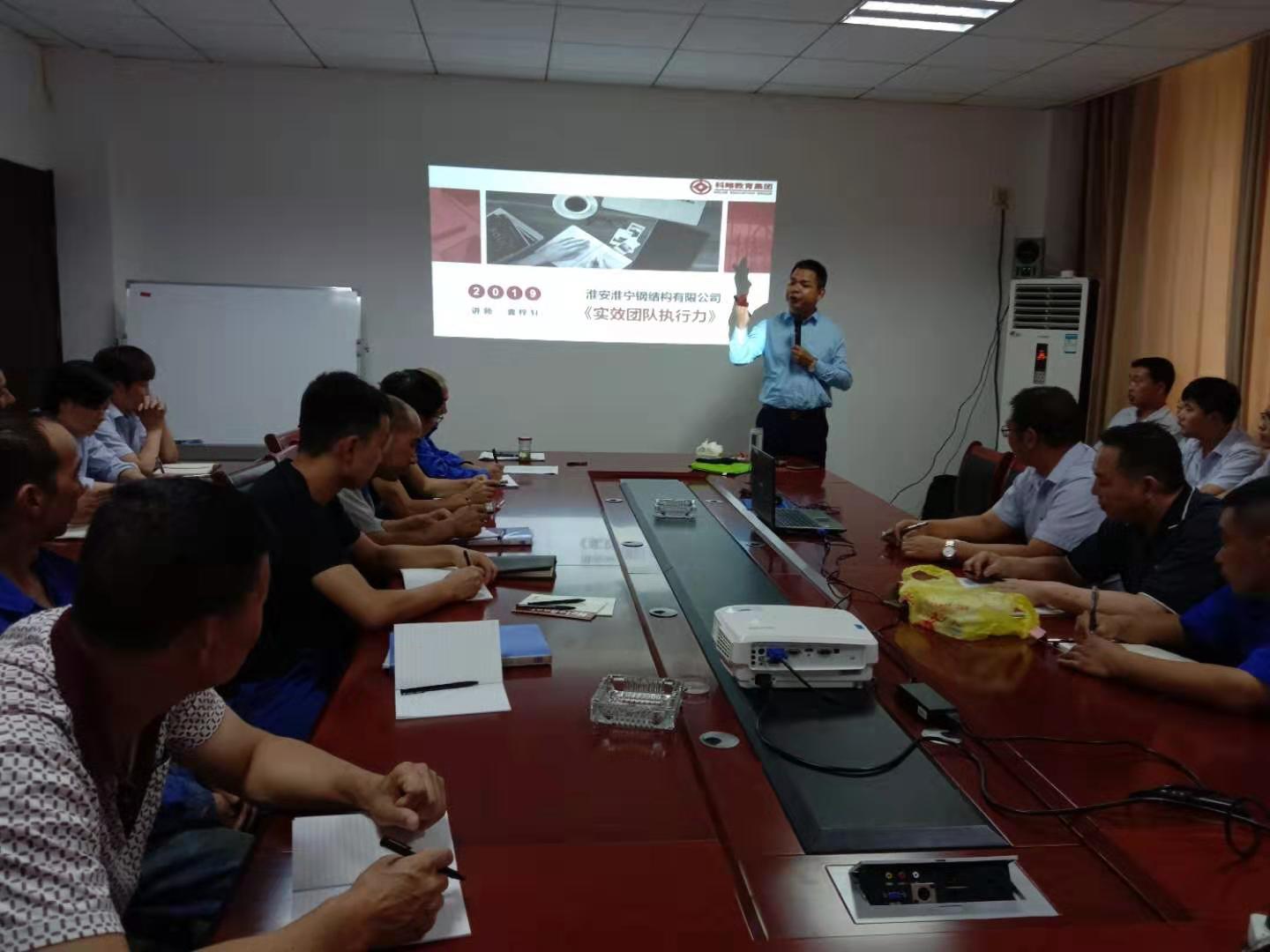 為不斷提升公司全體管理人員的管理創(chuàng)新能力、技術(shù)創(chuàng)新能力、市場(chǎng)開(kāi)拓能力,努力打造一支具有較強(qiáng)經(jīng)營(yíng)管理水平的人才隊(duì)伍,2019年8月15日淮寧鋼結(jié)構(gòu)有限公司在公司第二會(huì)議室舉辦了以提高執(zhí)行力為重點(diǎn)的企業(yè)管理知識(shí)培訓(xùn)班。